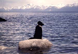 My dog Elko, named after his birthplace in Nevada, waits patiently for the next winter storm at Lake Tahoe.