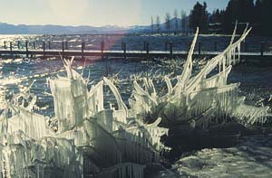 A bitter east wind on Lake Tahoe in Dec. 1990 coated the lake's west shore in ice.